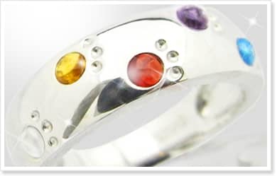 六猫足彩(無病息災)ねこの肉球モチーフ マルチカラー シルバー リング スタイルA 【送料無料】