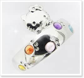 六猫足彩(無病息災)ねこの肉球モチーフ マルチカラー シルバー リング ハローキティモデル【送料無料】