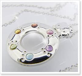 六猫足彩(無病息災)ねこの肉球モチーフ マルチカラープラチナ ペンダント ネックレス ラウンドモチーフ 【送料無料】